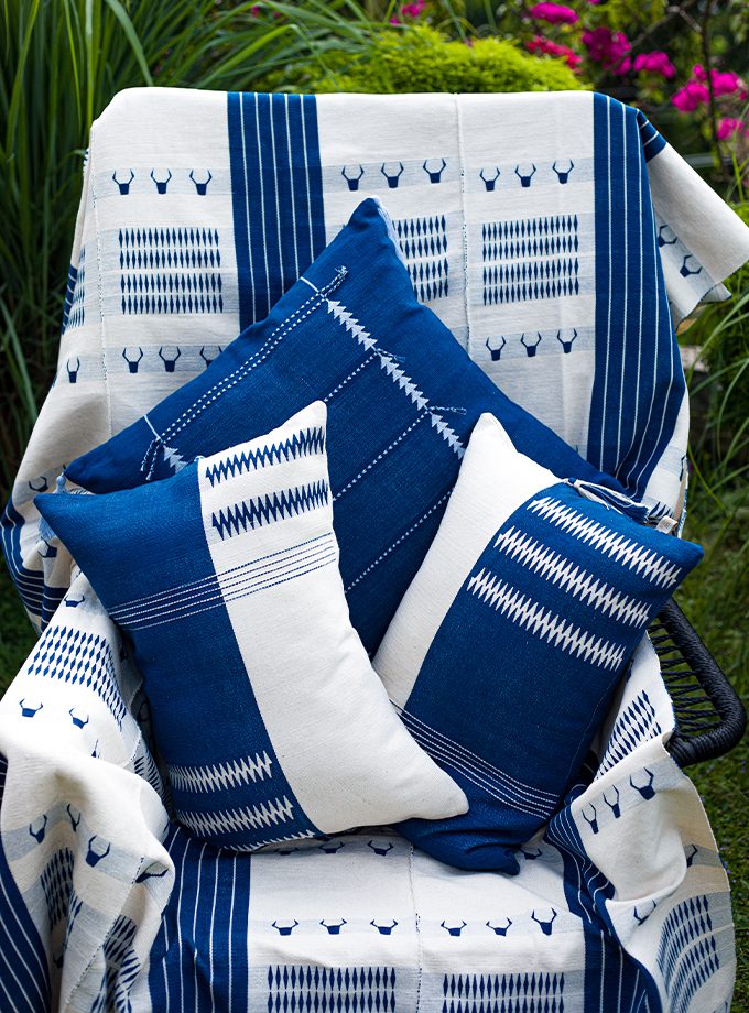 In Naga culture, indigo represents depth, calm, and connection to nature, while white symbolises purity, peace, and harmony. The patterns she creates include the zig-zag motif, which in Yimkhiung tradition represents the movement of rivers and the flow of life—symbolising adaptability, continuity, and resilience. Through her weaving, Toshila carries forward her tribe’s stories, heritage, and values, turning each textile into a living piece of cultural history.